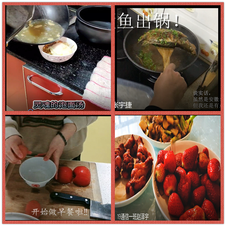 本网讯 为响应学校疫情防控工作的需要,电信学院学生全体宅家,安心生活。为缓解和调节同学们的紧张情绪,帮助大家保持积极乐观的心态,学院组织开展了以“发现生活的小确幸”为主题的温馨视频分享活动。同学们积极投稿,用摄像头记录自己的生活:家乡美景、宁静生活、厨艺展示……平淡与琐碎,却充满了生活的仪式感。