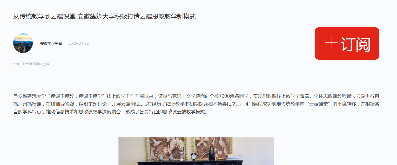 编者按:疫情期间,我校马克思主义学院面向全校7000余名学生,实现思政课线上教学全覆盖,积极打造云端思政教学新模式。421日,中安在线对此进行了报道,422日,学习强国平台进行了转载推介。