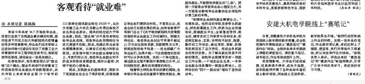 【媒体建大】安徽日报:安建大机电学院线上“赛笔记”