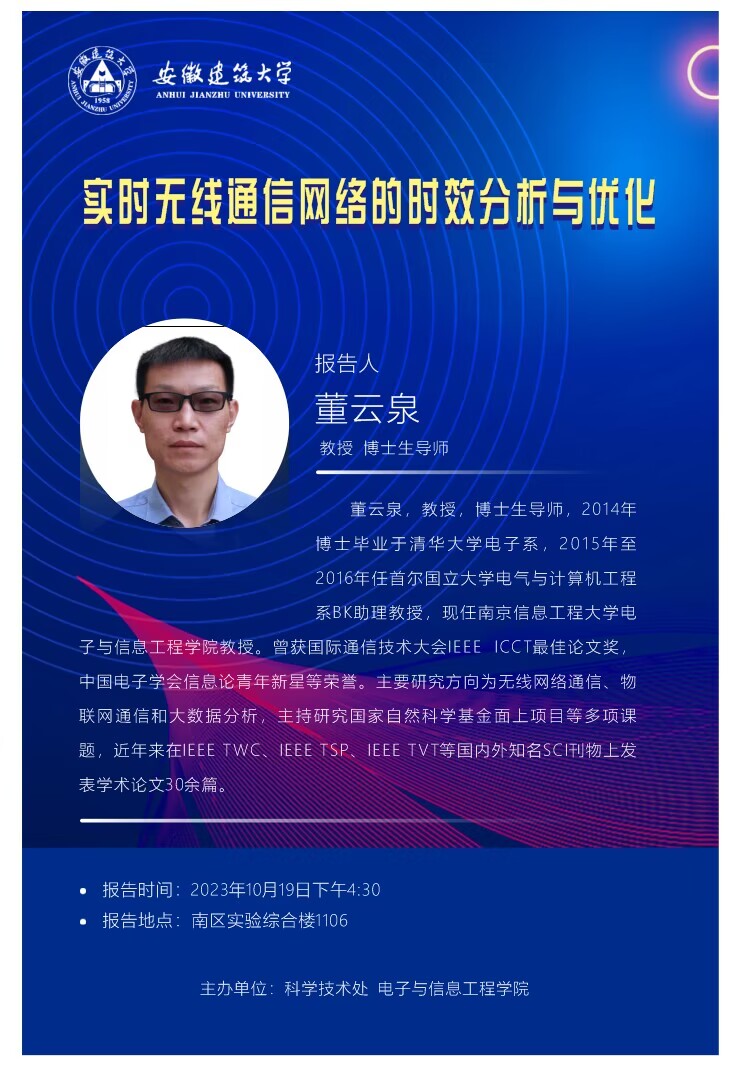 2023年第29场学术报告:实时无线通信网络的时效分析与优化