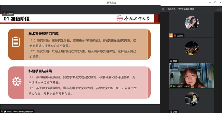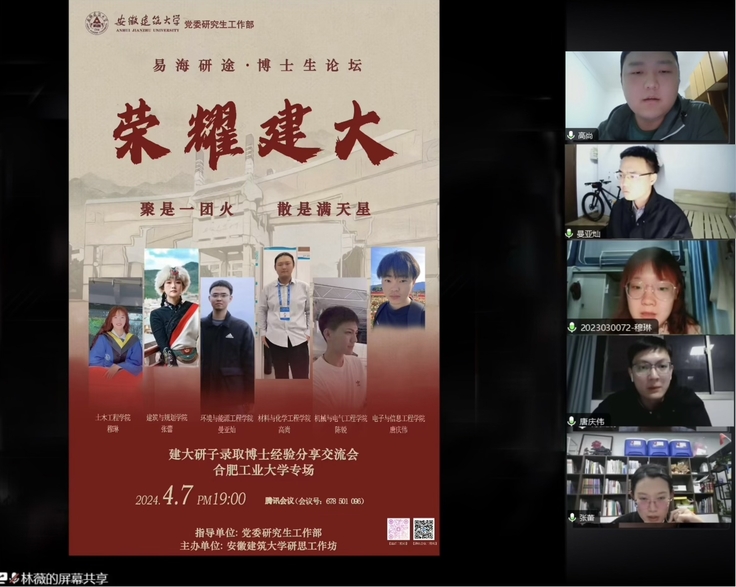 4月7日,研工部在线上开展第1期考博经验分享会本期讲座聚焦合肥工业大学,邀请了我校6位成功考取合肥工业大学的博士生们分享考博经历。