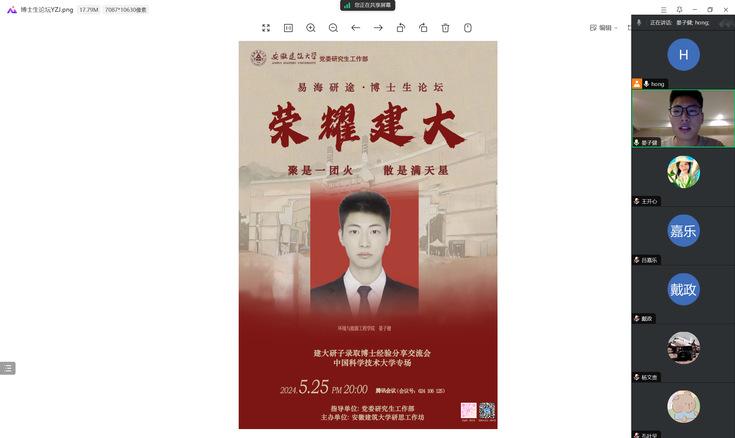 沉舟侧畔,千帆竞发。525日,研工部在线上开展第期考博经验分享会。本期分享会邀请了我校1位成功考取中国科学技术大学的博士生分享考博经历。