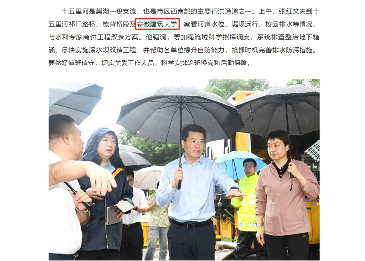 编者按:6月29日,合肥继续发布暴雨蓝色预警。省委常委、市委书记张红文到市防汛指挥部,研判雨情水情,部署应对举措,并前往十五里河沿线、庐江县凌安村地质灾害隐患点、兆河闸等处,看望慰问奋战在防汛一线的工作人员,实地检查调度防汛工作。