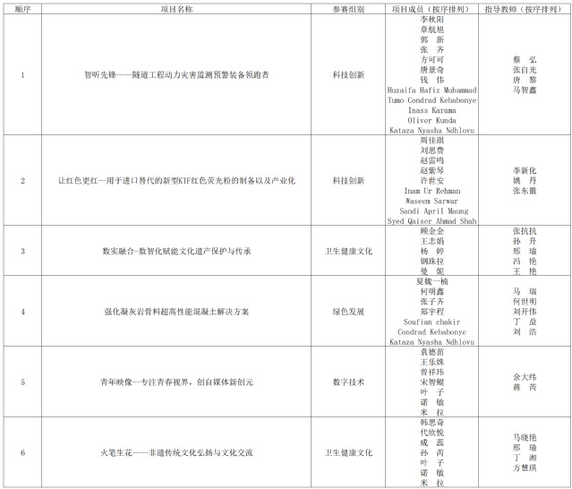 (项目顺序根据安徽学联发布顺序排列)