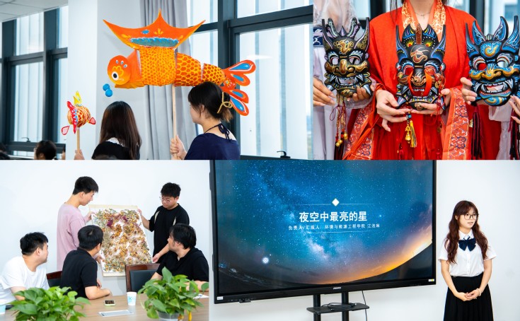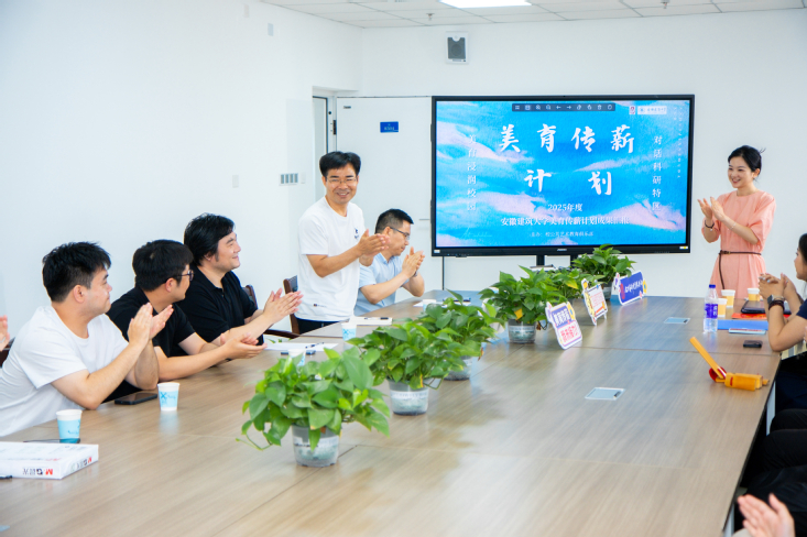 2025年度“美育传薪计划” 团队成员带着原创美育成果,走进建大科研特区,与特种电线电缆国家地方联合工程研究中心一线科研人员展开面对面的交流。他们展示的成果,是灵感与匠心的结晶:以建大校训为创作内核的书法作品,力透纸背间传递着建大特有的精神力量;以九月桥为灵感的国画,水墨晕染中勾勒出校园的灵动之美;歌颂安徽革命精神的原创快板书,节奏铿锵间激荡起爱国情怀;非遗鱼灯、木刻版画,承载着文化传承的使命。科研人员与同学们热烈探讨,思维的火花在艺术与科技的碰撞中迸发,打破壁垒,实现人文与科技的跨界对话。科研人员也向同学们分享学校最新科研项目进展,点亮了同学们探索未知的明灯,大家携手并肩,共同为建筑大学的发展注入活力。