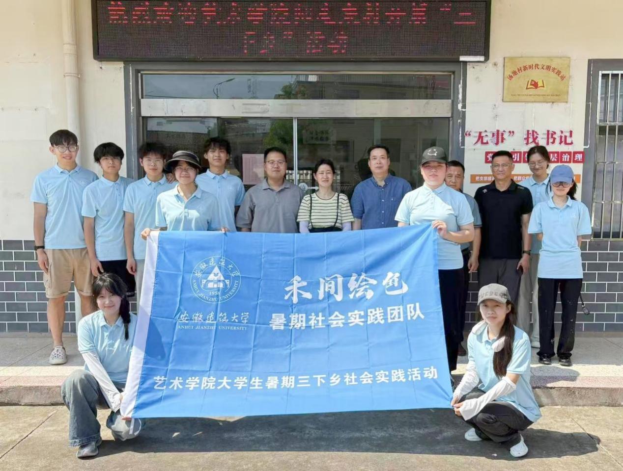 同一时间,艺术学院“禾间绘色”实践团10名师生奔赴舒城县汤池镇汤池村开展实地考察。师生们深入村落巷弄,走访当地村民,寻求第一手资料,并现场讨论如何融入创作构思,既要让村庄“颜值”提升,更要讲好汤池故事,让汤池的文化记忆、乡土风情“活”起来。