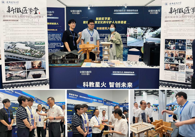 开幕当日,韩军、任清华等亲临我校展区,听取了校团委、建规学院及安徽省徽派建筑重点实验室关于徽派建筑“文化保护与文脉传承薪火相继,科技创新与科学普及双翼齐飞”的实践成果汇报,并对我校四十年如一日深耕徽派建筑文化的坚守与成就表示高度肯定。