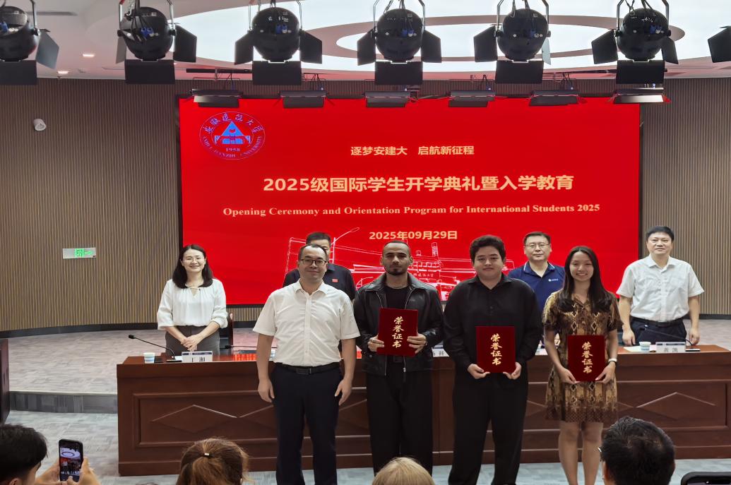在热烈的掌声中,杨科发表热情洋溢的致辞。他代表学校对全体国际新生表示诚挚欢迎,向他们介绍了学校在学科建设、人才培养、国际交流等方面的成果,寄语全体国际学子以开放包容的心态拥抱多元文化,以勤勉笃实的态度深耕专业知识,以脚踏实地的行动追逐青春梦想,希望他们在安建大的校园里收获知识、友谊与成长,成为中外文化交流的桥梁与使者。情真意切的讲话,既是温暖的鼓励,也是一堂意味深长的《开学第一课》。