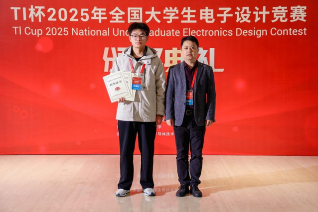 本网讯 近日,2025年全国大学生电子设计竞赛颁奖典礼在北京圆满落幕。我校机电学院赵汝海老师指导的竞赛队伍在本次竞赛中表现优异,荣获全国一等奖。