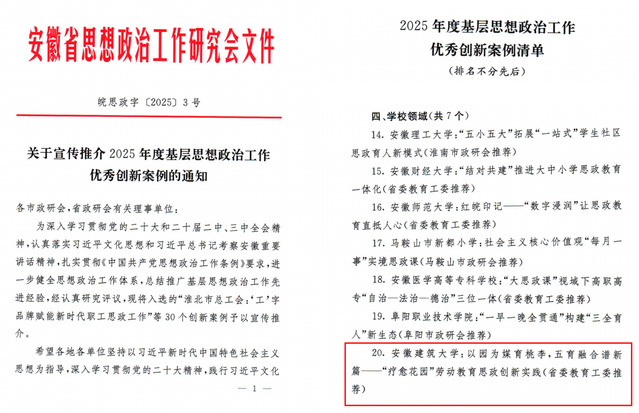 我校案例入选2025年安徽省基层思想政治工作优秀创新案例