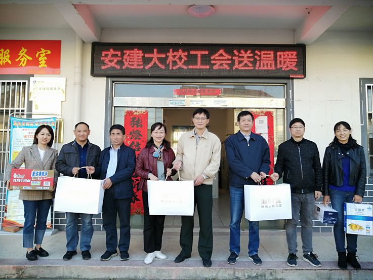 本网讯 11月11日,校工会组织分工会主席、工会委员会委员及女工委工作秘书代表一行5人,学校扶贫点舒城县汤池村,看望驻村扶贫干部,开展“冬送温暖”慰问活动。
