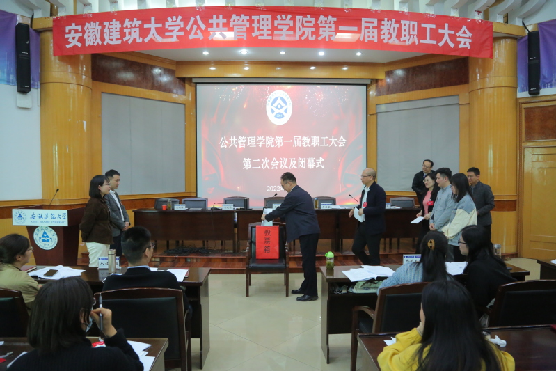 大会第二次全体会议及闭幕式于四点半在F楼三楼报告厅召开,会议通过了《关于院长工作报告的决议(草案)》《关于工会工作报告的决议(草案)》,通过了教代会执委会选举办法、总监票人、监票人、计票人建议名单。随后,大会选举并产生了公共管理学院第一届教代会执委会。大会在雄壮的《国际歌》中闭幕。