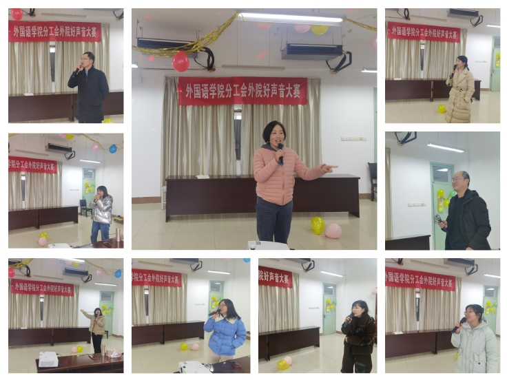 本网讯 为鼓励广大教职工用歌声唱响学校奋进新征程的优美旋律,歌颂建功新时代的感人故事,体现主旋律、弘扬正能量,展现向上向善的精神风貌,近日,外国语学院分工会在学院会议室举办“外院好声音”歌手比赛,学院教职工积极参与,反响热烈。