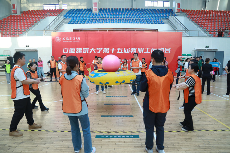 本次运动会共设置6个比赛项目,分别是“旱地冰壶”、“手脚并用”、“节节攀升”、“众星捧月”、“碰碰球大战”和通俗桥脾。比赛开始,各参赛队研究战术,充分发挥团队作用,参赛队员们齐心协力、全力以赴,现场观众跃跃欲试、情绪高涨,为场上队员热情呐喊、加油助威,场面热火朝天,欢声笑语连成一片。经过激烈的角逐,获团体总分前八名的分别为土木学院、材化学院、机关第一党委、环能学院、后勤集团、机关第二党委、电信学院、艺术学院。土木学院、机关第一党委、后勤集团获得优秀组织奖。