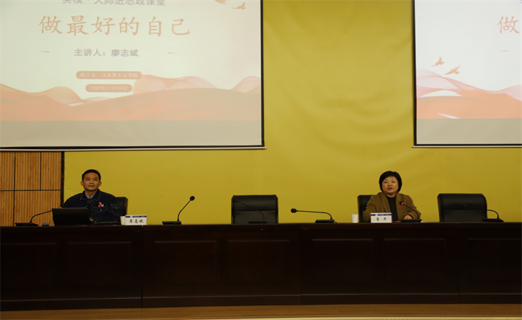 本网讯 为深入学习贯彻习近平新时代中国特色社会主义思想和党的二十大精神,大力宣传弘扬道德模范先进事迹和伟大精神,进一步深入推进“大思政课”建设,深化思政课改革创新。近日,由校工会和马克思主义学院联合举办的“英模•大师进思政课堂”主题报告会在徽风楼二楼报告厅举行。