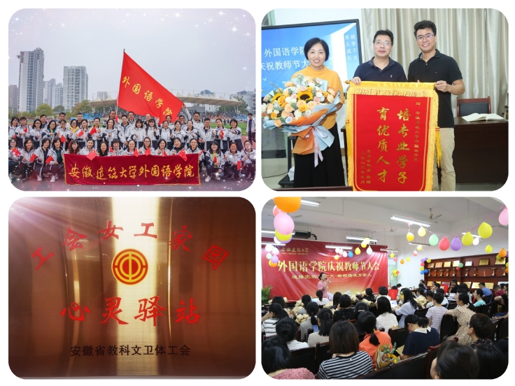 近年来,在学校党委行政的坚强领导下,在校工会的大力支持下,外国语学院分工会通过加强自身建设,凝聚学院力量,提高自身实力,先后获得安徽省三八红旗手1名、省教科文卫体工会女工工作先进个人1名、校提案工作先进单位、校工会工作先进集体、校模范职工小家、省系统工会心灵驿站等荣誉称号。分工会注重在日常工作中积极发挥维护、建设、参与、教育职能,在营造凝聚向上的工作氛围,带领全体教职工立足岗位、建功立业方面发挥了重要作用。
