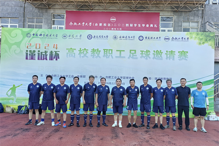 本网讯  6月22日至29日,我校教工足球协会在校工会的指导下,组建了一支由50岁及以上的教职工组成的“50+”教工足球队,参加了由合肥工业大学主办的2024年“谨诚杯”高校教职工八人制足球邀请。通过激烈的角逐中,我校“50+”教工足球队表现出色,最终获得了三等奖的优异成绩。