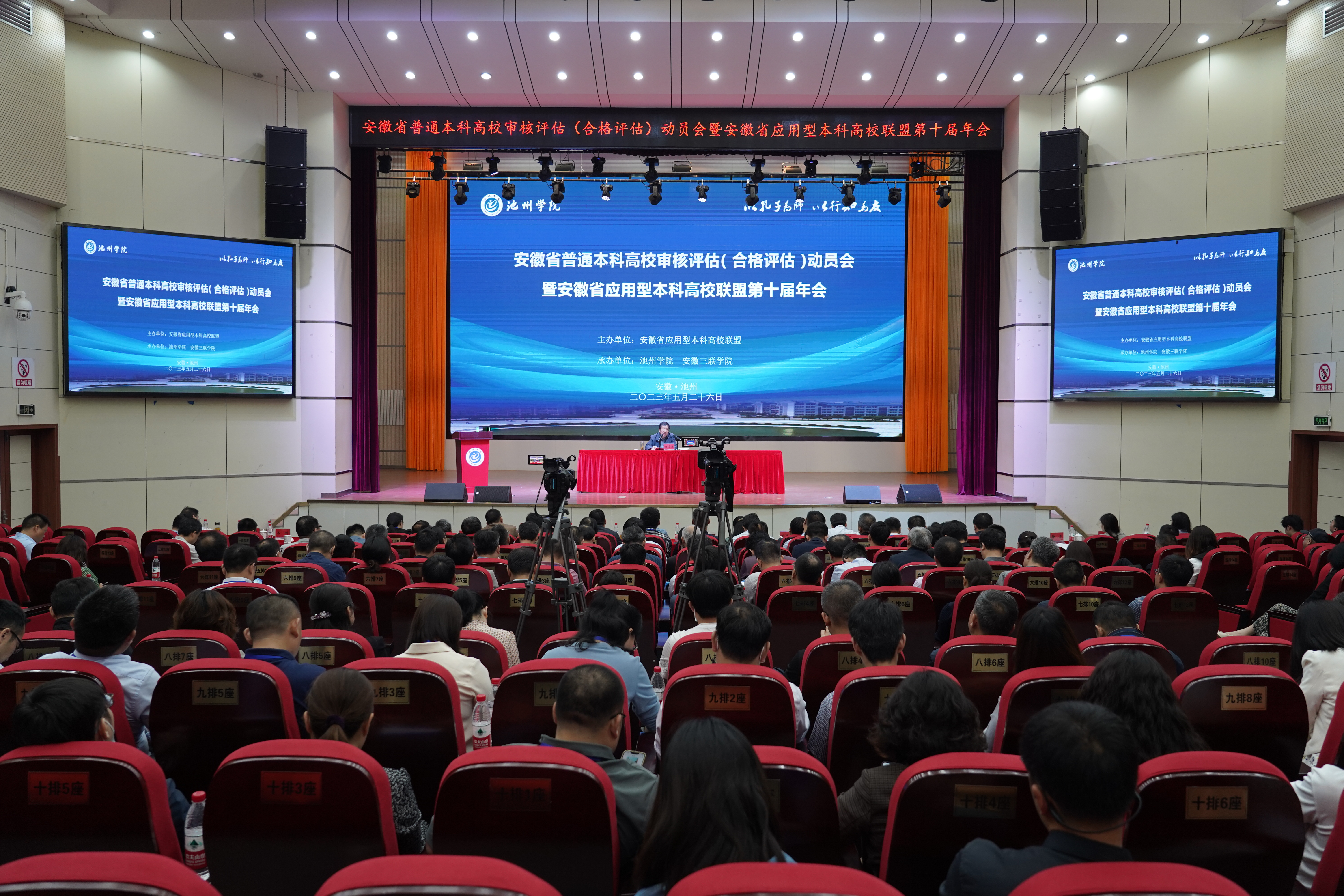本网讯 5月26日,安徽省普通本科高校审核评估(合格评估)动员会暨安徽省应用型本科高校联盟第十届年会在池州学院召开,省教育厅副厅长储常连,两届联盟常任主席单位,省教育厅相关处室领导,24所联盟高校及应邀参会的部分省内高校校领导、教务处处长、发展规划处处长,联盟秘书处和池州学院师生代表共计200余人参加会议。校党委常委、副校长闵杰应邀参加。