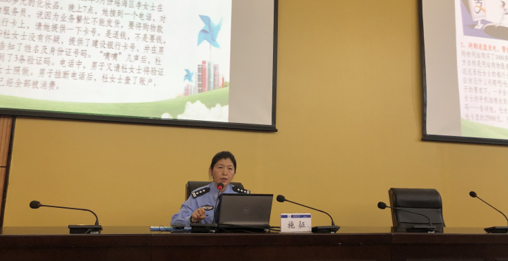 施征警官随后介绍了近年来电信网络诈骗犯罪的基本情况,讲解冒充熟人诈骗、网络交易诈骗、网络投资诈骗、网购异常诈骗、冒充客服类诈骗、贷款类诈骗、网络交友类诈骗等多类常见的诈骗手段,并针对各类诈骗手段,给广大师生提出许多实用的防诈骗建议。施征警官希望大家提升安全意识,关注相关宣传,保护好自己和他人,避免受到电信诈骗的侵害。