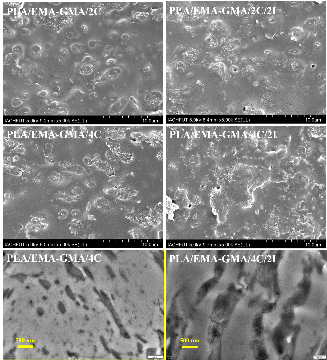 将含羧基ILs引入PLA/EMA-GMA和PLA/EMA-GMA/MWCNTs共混复合体系,使得材料在具备优异介电性能的基础上,冲击强度和断裂伸长率分别提高22倍和71倍,(图3)。相关研究成果发表在Adv.Compos. Hybrid Mater.,2021.4(3): 639-646,Compos. Sci. Technol.2020, 200:108347,Eur.Polym. J.2018,99: 58,Thermochim.Acta. 2019,678: 178302,并出版《离子液体对聚乳酸共混复合物界面调控机理》专著一部,制定国家标准1件。