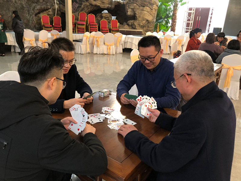 生态园观赏结束后,开展了教职工“掼蛋”比赛,比赛采取自由组队的形式。比赛尚未开始,选手们便早已进入状态,随时准备应战。待分工会主席宣布开始后,选手们密切配合、沉着应战,对阵双方权衡战术、较量牌技、比拼智慧。在旁观战的教职工还不忘时时奉献喝彩声,现场充满欢声笑语,气氛轻松愉悦。