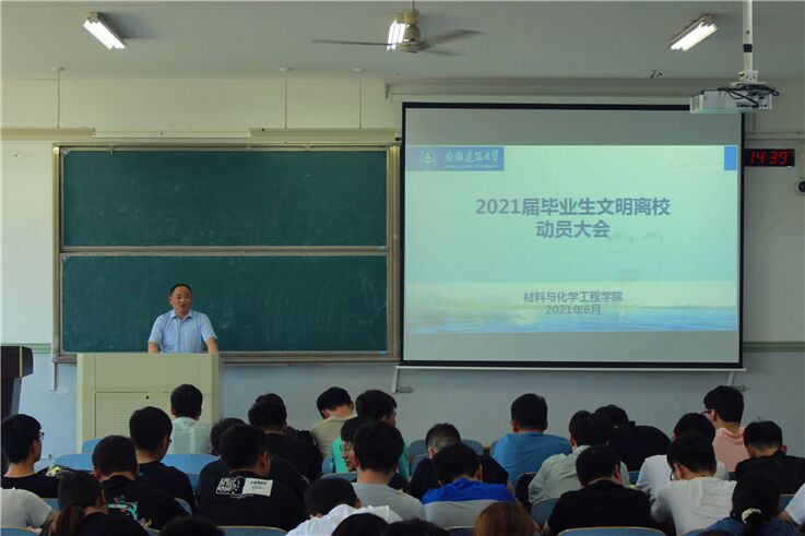 本网讯  为确保学院毕业生离校工作平稳、有序推进,6月7日,材化学院在东辅楼教室召开2021届毕业生文明离校动员大会,毕业班辅导员和全体毕业生参加大会。