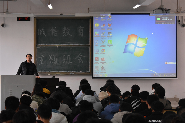 本网讯  秉承“增强学生诚信意识,走好未来人生路”的学院发展目标,12月17日,学院辅导员刘浩于逸夫楼5103教室为材化学子开展诚信教育主题班会。