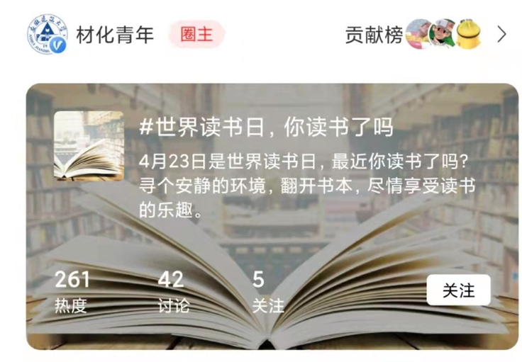 春暖花开日,读书正当时——材化学院举办“世界读书日”线上分享活动