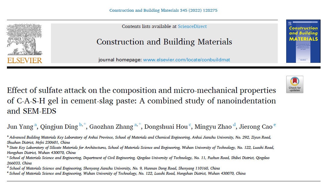 本网讯 近期,我校先进土木工程材料科研团队杨军博士联合武汉理工大学,在混凝土材料水化产物组成和C-A-S-H凝胶微结构研究领域取得新成果,在国际知名建筑材料期刊《Construction and Building Materials》(中科院1区,影响因子7.693)上发表了题为“Effect of Sulfate Attack on The Composition and Micro-mechanical Properties of C-A-S-H Gel in Cement-slag Paste: A Combined Study of Nanoindentation and SEM-EDS”的研究论文(https://doi.org/10.1016/j.conbuildmat.2022.128275), 杨军博士为第一作者,武汉理工大学产学研首席教授/欧美黑人巨大videos精品_欧美黑人巨大xxxxx_欧美黑人乱大交_欧美黑人乱大交_欧美黑人牲交videossexeso_欧美黑人添添高潮a片www_欧美黑人添添高潮a片www_欧美黑人性暴力猛交喷水黑人巨大讲席教授丁庆军和我校张高展教授为共同通讯作者。