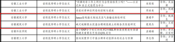 我校先进建筑材料创新团队研究生楚英杰喜获安徽省优秀硕士学位论文