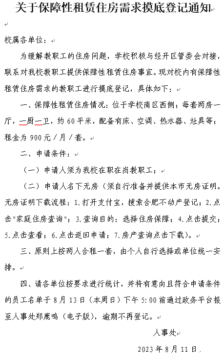 转发《关于保障性租赁住房需求摸底登记通知》