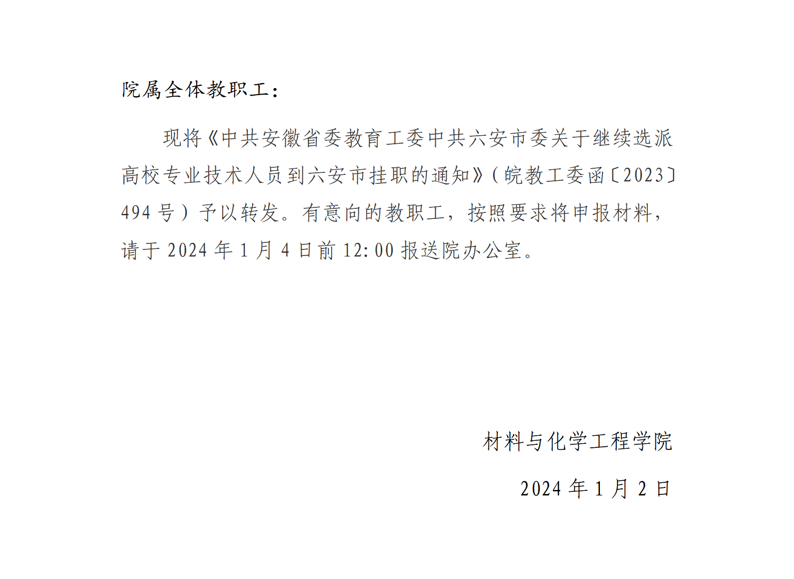 关于转发中共安徽省委教育工委 中共六安市委《中共安徽省委教育工委 中共六安市委关于继续选派高校专业技术人员到六安市挂职的通知》的通知