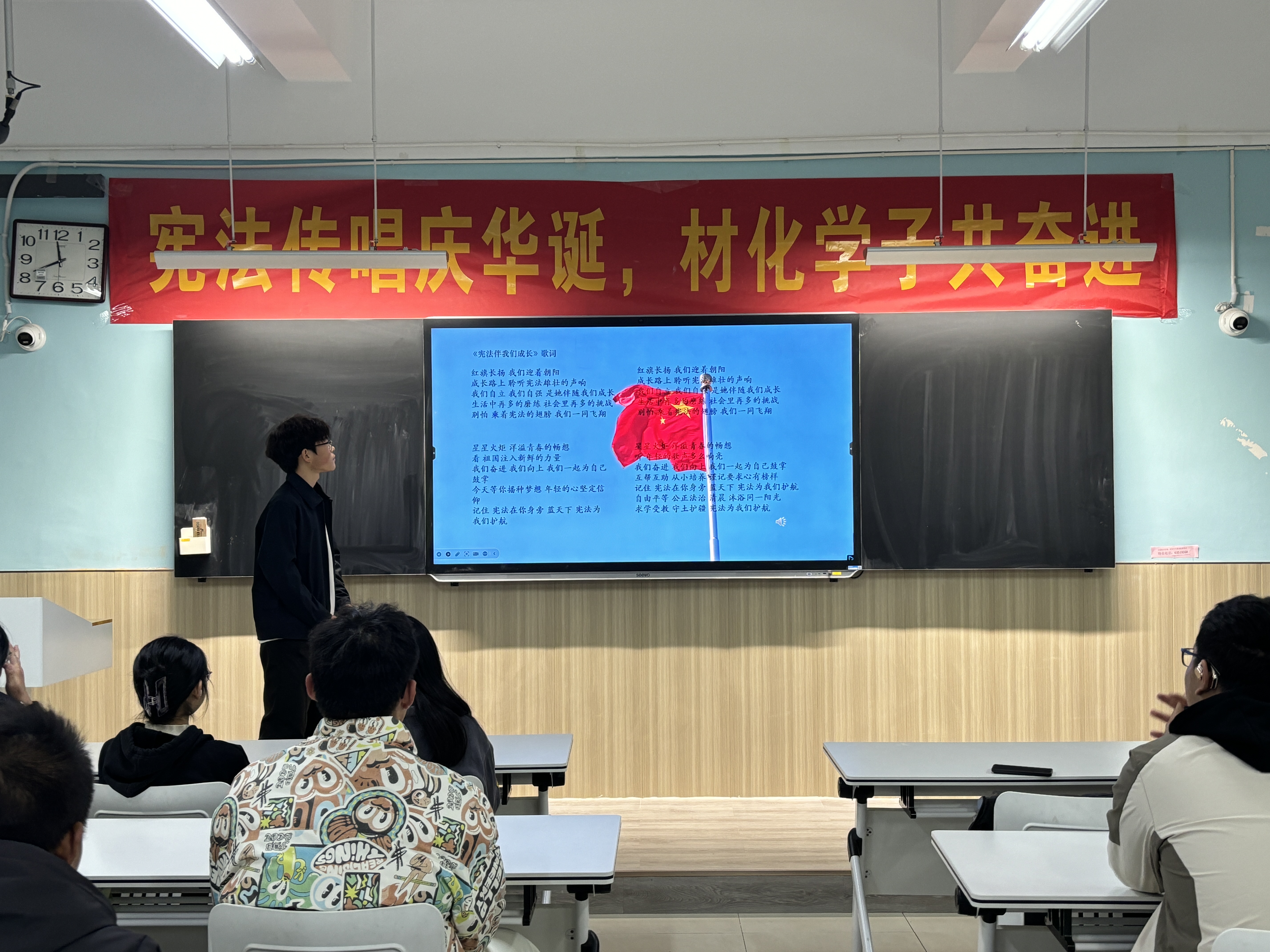 本网讯 在第十一个“国家宪法日”来临之际,为弘扬法治精神、践行宪法信仰推进法治校园建设,材化学院于12月4日在主教楼1509 成功举办宪法传唱明信仰:材化学院共迎第十一个“国家宪法日”主题活动。学生以青春之声,奏响法治强音。