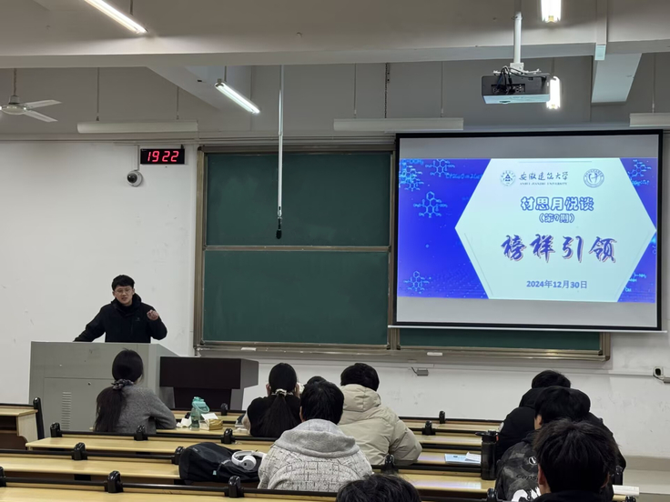 本网讯 为了充分发挥优秀学生的榜样示范引领作用,激发学生的学习热情与进取精神,建设积极、健康、向上的优秀学风,促进个人的全面成长和发展,12月30日,材化学院举办第九期“材思月悦谈”,邀请荣获2024年度国家奖学金的2021级金属材料工程专业学生宋子豪、2021级应用化学专业学生王天意与大一新生分享在学业规划、学科竞赛、校园生活等方面的成功经验。