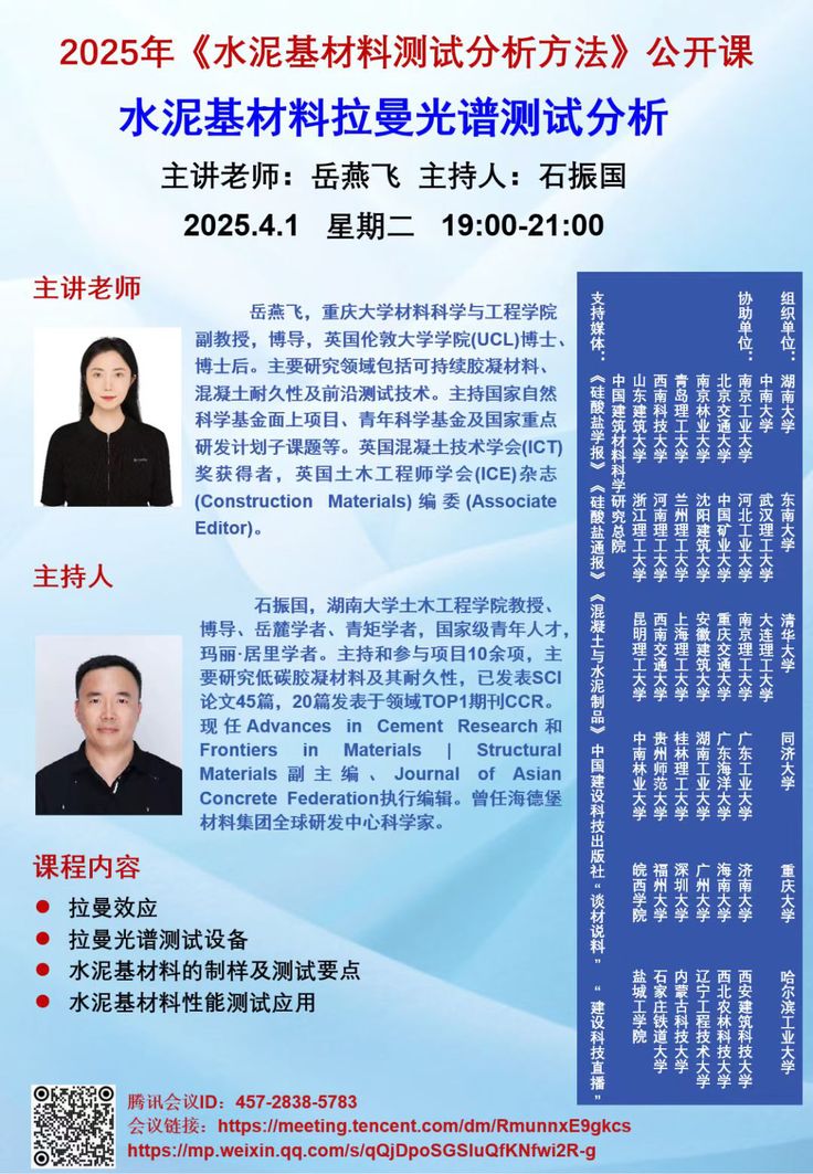2025年《水泥基材料测试分析方法》公开课——水泥基材料拉曼光谱测试分析
