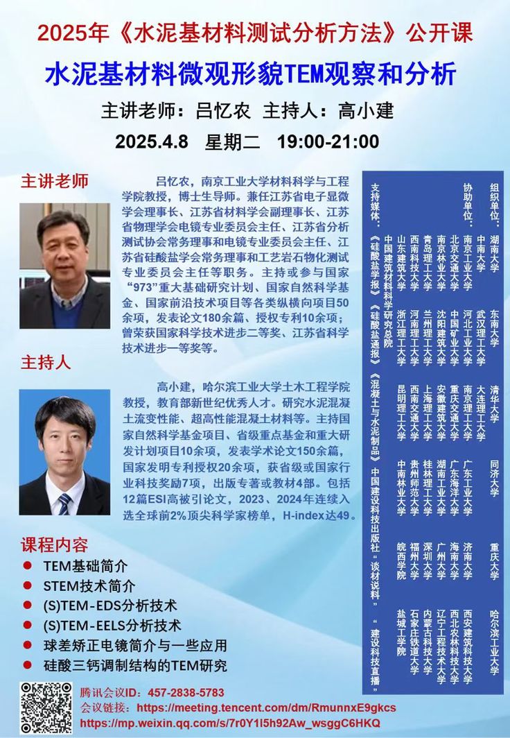 2025年《水泥基材料测试分析方法》公开课——水泥基材料微观形貌TEM观察和分析