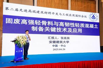 本网讯 2025年4月25日至4月27日,第二届先进高端建筑材料开发与工程应用在中山成功举办,会议由武汉理工大学主办,硅酸盐科学与先进建材全国重点实验室、澳门科技大学、东南大学、香港城市大学等单位承办,会议举办了“与顶级科学家对话”专场沙龙、主旨报告、专题论坛、青年学者论坛、学术成果与行业先进产品展等活动。武汉理工大学副校长、国家杰出青年基金项目获得者王发洲教授致开幕辞,中国工程院士、东南大学刘加平教授做了题为超高性能水泥基材料研究与应用”的特邀主旨报告,中国工程院院士、暨南大学校长邢锋教授做了题为“滨海混凝土结构双重保障技术:ICCP-SS”的特邀主旨报告。 我院张高展教授受邀参加大会,担任“分会场二:低碳零碳新型建材”主持人并做了题为“固废高强轻骨料与高韧性轻质混凝土制备关键技术及应用”的邀请报告,详细介绍了利用煤矸石、磷石膏等固体废弃物制备高强轻骨料与轻质超高性能混凝土的关键技术、产业化生产情况及在实际工程中的应用效果。