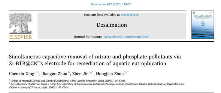 本网讯 近日,金震副研究员与中科院合肥物质科学研究院固体物理研究所周宏建研究员联合指导的硕士研究生丁晨鑫环境水处理领域国际期刊《Desalination》(中科院一区,IF=9.8)发表题为Simultaneous capacitive removal of nitrate and phosphate pollutants via Zr-BTB@CNTs electrode for remediation of aquatic eutrophication研究论文,欧美黑人巨大videos精品_欧美黑人巨大xxxxx_欧美黑人乱大交_欧美黑人乱大交_欧美黑人牲交videossexeso_欧美黑人添添高潮a片www_欧美黑人添添高潮a片www_欧美黑人性暴力猛交喷水黑人巨大为论文第一完成单位。
