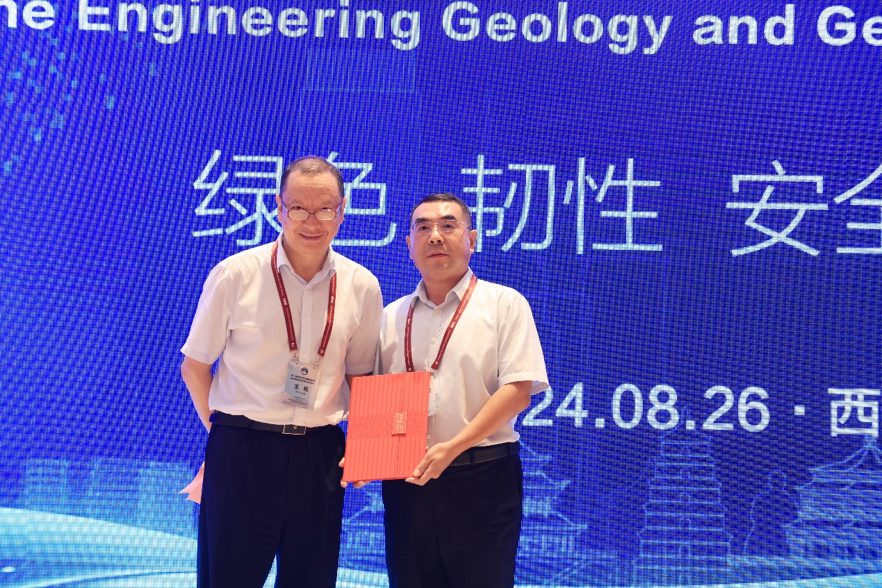 蔡国军教授受邀在本次大会“极端环境工程地质灾害勘察技术与发展动态”分论坛做特邀报告,报告题目为“路基工程废弃物资源化利用关键技术及应用研究”,主要介绍了建筑渣土路堤填料细观表征及内部状态演化分析、再生纤维路基土微观加固机制及宏观力学表征以及路基工程废弃物资源化利用长期服役性能评价,报告得到了与会专家学者的高度好评。