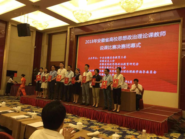 党支部是一个战斗堡垒,党员的模范形象是无声的号角。基础纲要党支部老师承担了全校“思想道德修养与法律基础”“中国近现代史纲要”“形势政策”的课程,全体党员克服种种困难,在教学岗位上我们默默做着奉献,发挥着模范带头作用。支部党员按照习近平总书记提的政治要强、情怀要深、思维要新、视野要广、纪律要严、人格要正”的六点要求,牢牢坚持马克思主义在高校意识形态领域的指导地位,坚持思政课的政治方向。支部党员在高质量完成教学任务的同时,也注意教学经验的总结和技能的提升。2019年,支部党员宣璐老师参加了由国家教育行政学院承办的中宣部、教育部高校思想政治理论课骨干教师研修班的学习。在教学效果方面,2019年支部党员获得省级教学成果一等奖、三等奖各一项;支部党员积极参加教学竞赛,在安徽省思政课相关比赛中省级二等奖1项,三等奖2项。