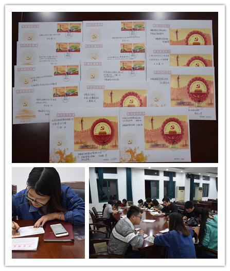 “学习十九大,遥寄明信片”活动中,制作习近平总书记重要讲话书签,在院内宣讲时进行发放,通过明信片与其他高校的同学分享学习感受。