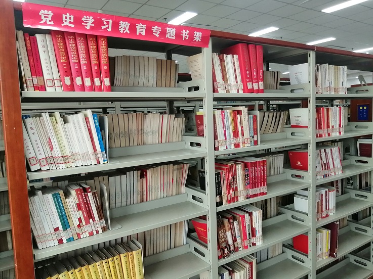 本网讯 为贯彻落实学校开展党史教育动员大会精神,图书馆充分利用现有馆藏资源,在南区馆二楼综合阅览室和北区馆书库设置了“学党史专题教育书架”,将馆藏红色经典书籍汇总分类,实行专区摆放,便于广大师生深入系统的学习党史。