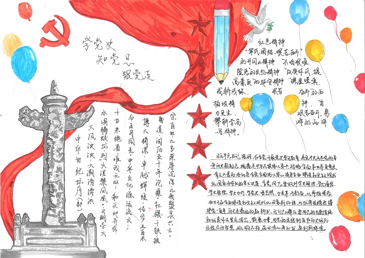 本网讯  在建党百年之际,探索党史学习新模式,电信学院学生第六党支部举办“学党史、知党恩、跟党走”主题手抄报活动。