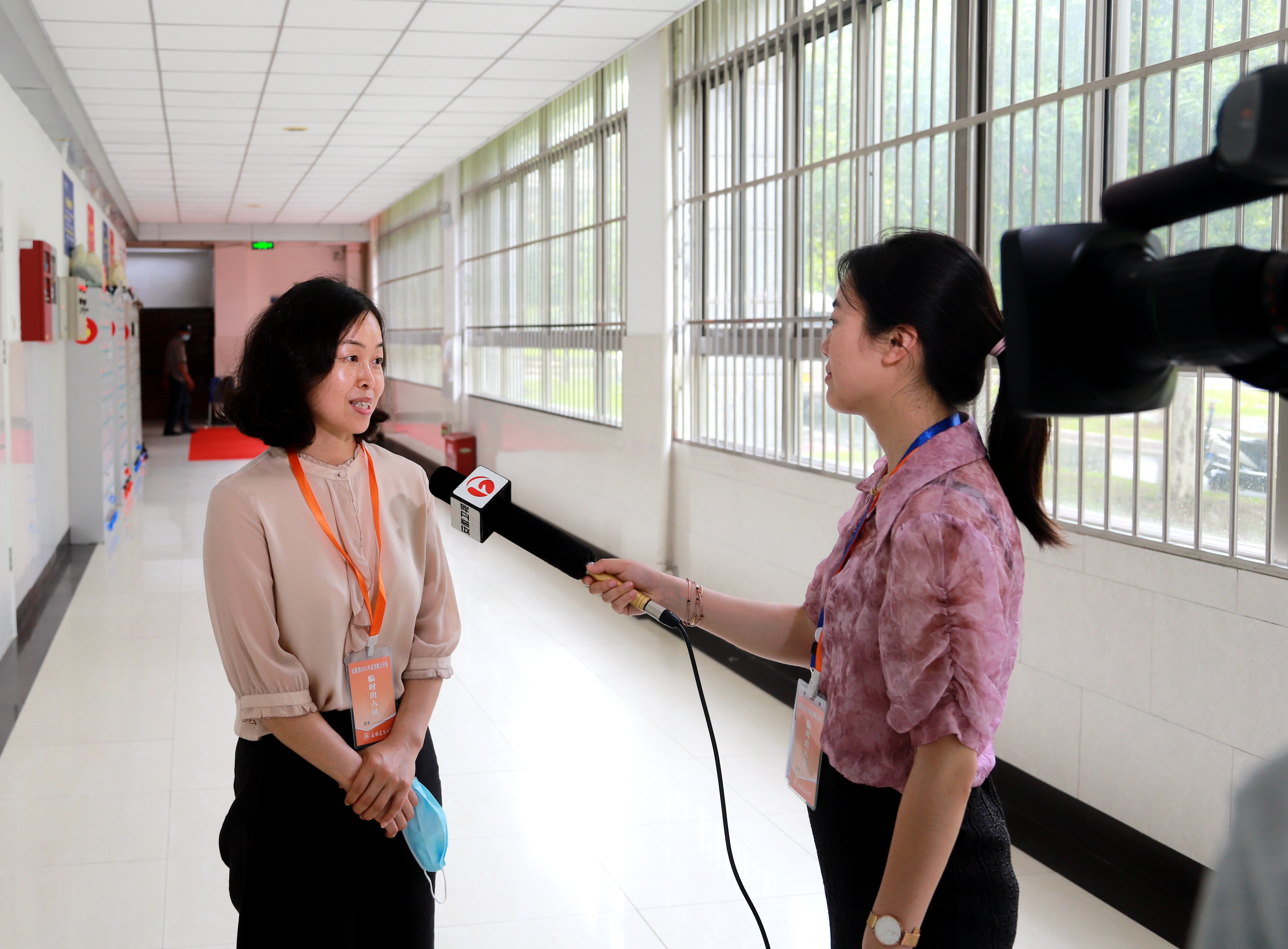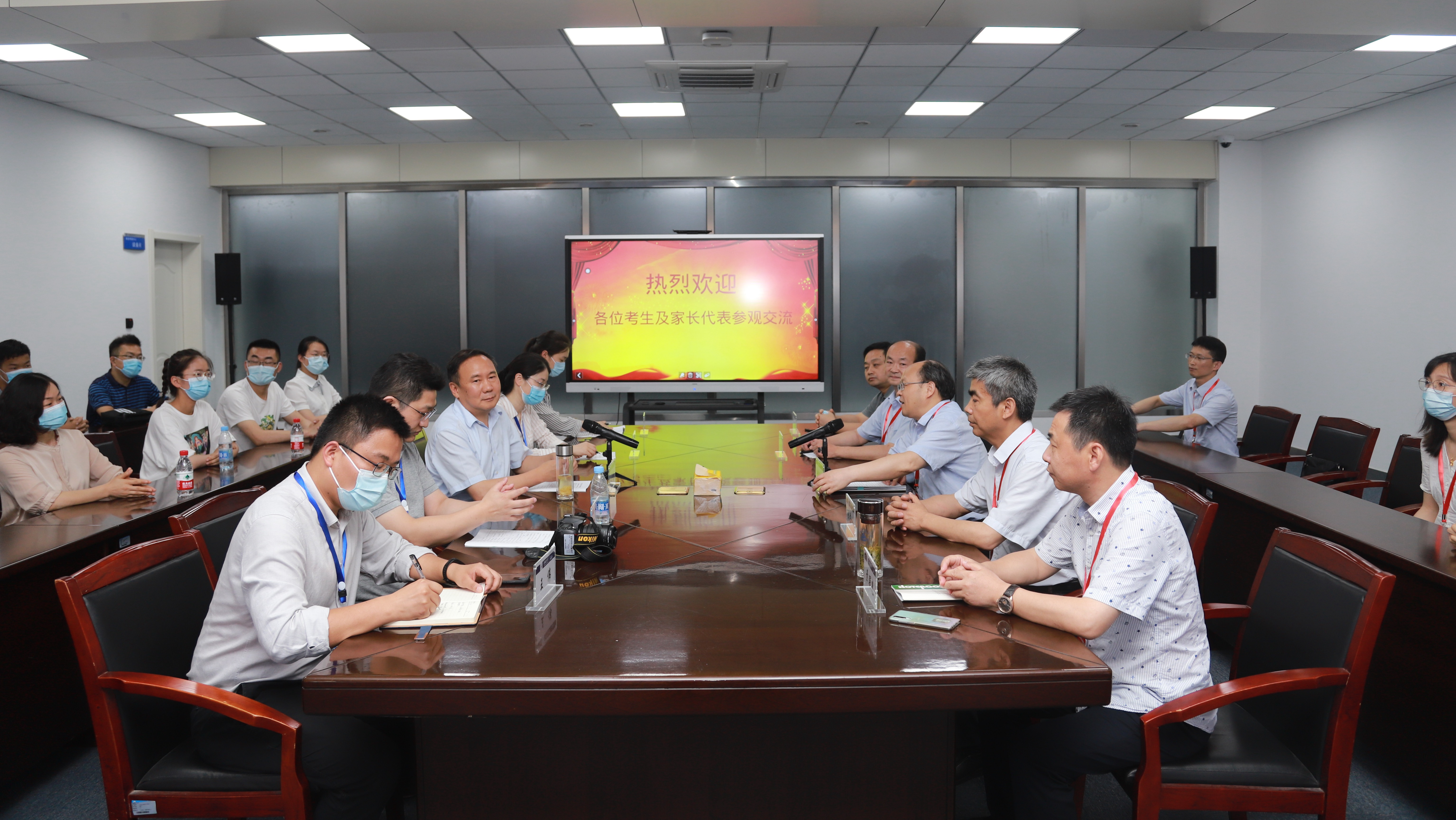参观活动由省考试院副院长胡雨生带队,学校网评办主任和学科组、专家组等相关负责人向考生和家长们依次介绍了今年网评工作总体情况、组织机构、教师构成、评卷流程及相关岗位职责等信息。参观人员亲身体验了网评入场安检,在工作组引导下有序参观了评卷场所监控系统、评卷机房外围,了解评卷质量监控、场地疫情防控等举措,零距离体会高考评卷氛围。