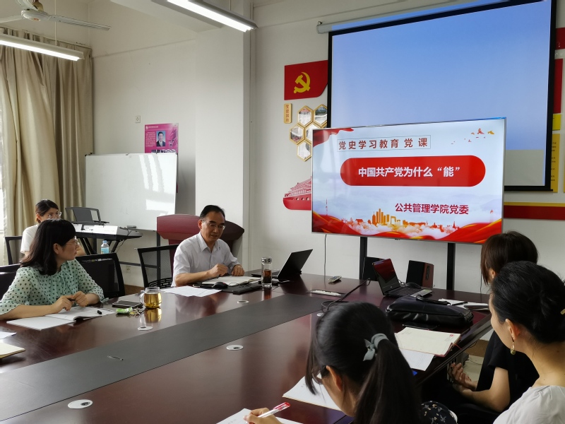 本网讯 为纪念中国共产党100周年华诞,深入学习贯彻习近平总书记关于加强党史学习教育的重要论述,进一步推动学校党史学习教育走深走实,6月16日,公共管理学院举办党史学习教育专题党课。学院党委书记李道先以“中国共产党为什么‘能’”为题,带领学院全体党员同志重温中国共产党百年党史。