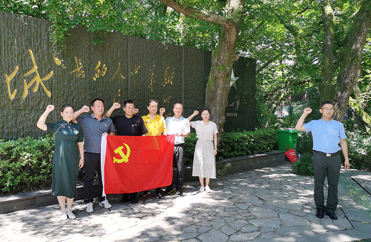 总有一种力量让我们感动,总有一种精神催我们奋进,在纪念馆前,全体党员重温入党誓词,并纷纷表示,要扛起新时代“铁军精神”接力棒,继承和发扬党的光荣传统,不忘初心,牢记使命,在各自的岗位上,担当作为,砥砺前行,以优异成绩向建党100周年献礼。/图:李晓冉 杜卫提;审稿:徐飞