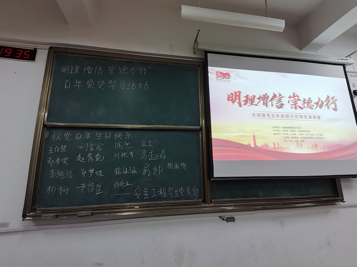 本次党日活动主要分为三个环节,分别是党课学习、研讨交流、为党庆生。在第一个环节中,支部党员认真学习“明理增信,崇德力行”主题党课,一起回顾党的百年峥嵘历程。研讨交流环节,党员们积极参与、热情讨论。19级安全工程1班的陶然有感而发:“这次党课学习给我带来很大的震撼,我们如今安稳生活的背后是无数革命家的奋斗与鲜血,我们更应该好好珍惜当下的幸福生活。”18级安全工程专业的黄禧隆感慨说道:“如果我能够回到五四运动那一天,我想对青年领袖说一声:‘这盛世,如你所愿’。” 在最后环节——为党庆生中,同学们积极参与,认真地留下了自己的签名,以此向党的百年华诞送上最真挚的祝福。