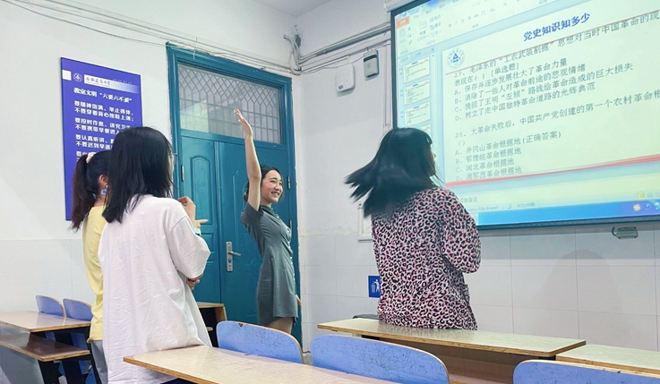 一场党史知识竞赛,让党史学习“活起来”。党的每一段历史,都是一部理想信念的生动教材,“《可爱的中国》是谁的不朽篇章?”“中国共产党战胜敌人的三大法宝是什么?”“长征是宣言书、长征是宣传队、长征是播种机是谁提出的?”比赛中,同学们积极抢答,展现了扎实的党史知识储备和融洽的团队协作,比赛现场,掌声四起。