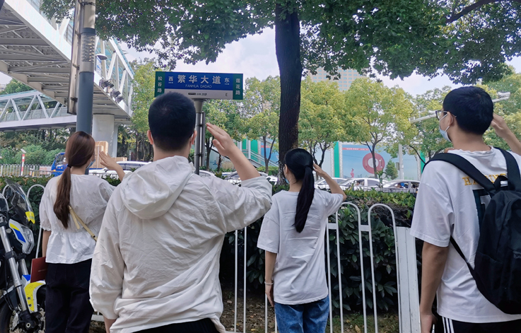 “打卡”第二站,同学们来到了位于肥西县的延乔路、集贤路和繁华大道。通过热播电视剧《觉醒年代》,同学们对延乔路产生了别样的情感,其背后的故事更是引大家深思。延乔路短,集贤路长,它们没能汇合,却都通往了繁华大道。这也预示着一代代共产党人一路走来的坎坷艰辛,才造就了如今的繁华盛世。