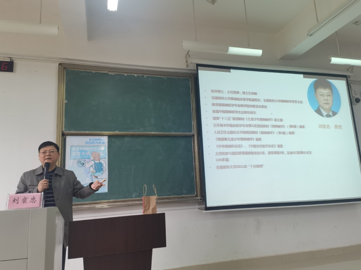 11月17日下午,外国语学院心理辅导站在逸夫楼5104教室组织了大学生精神卫生健康科普讲座,安徽医科大学精神医学系主任医师、博士生导师刘寰忠教授,为同学们带来了“保持心身健康,共创美好未来”主题讲座。学院党总支副书记、学工办主任,来自全院各班级的160名学生聆听了讲座。